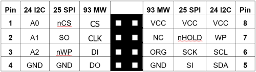 Programming package adapter to enable “Out of System” programming of 8-pin Serial EEPROM devices on the AP-114 programming system. Suitable for all 1.27mm pitch 0.15” wide body JEDEC SOIC devices from 8 to 16 pins.